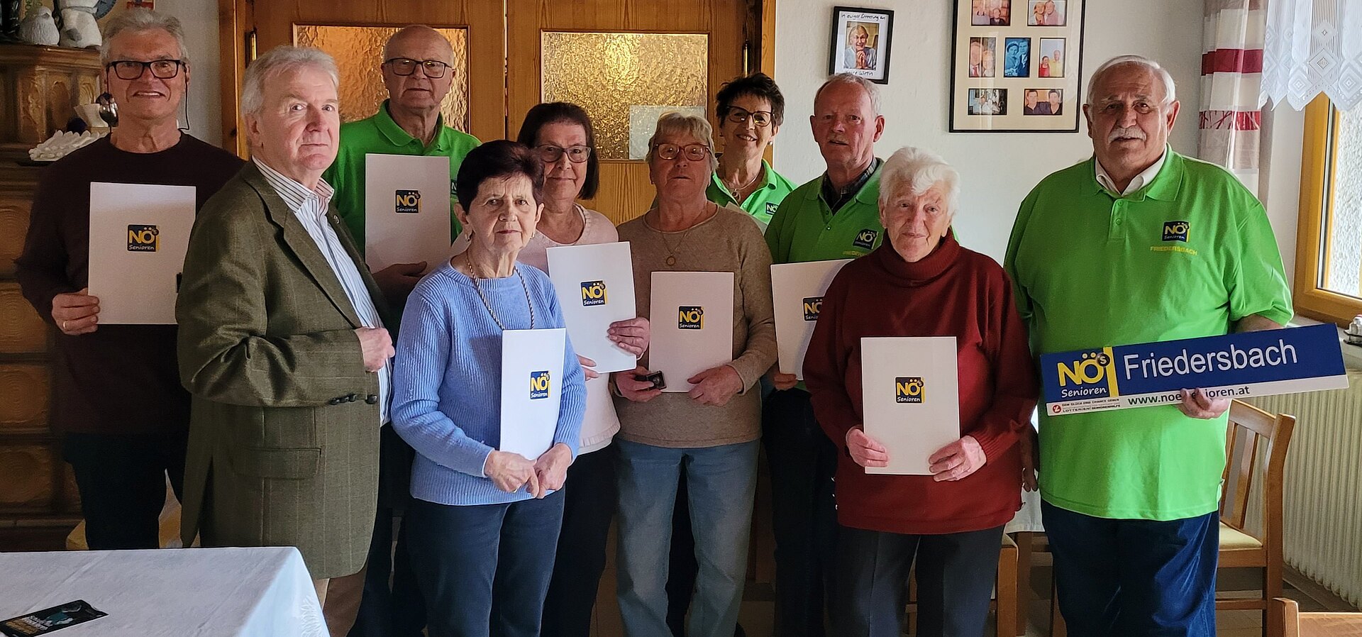 Im Rahmen der JHV am 29.3.2026 ehrte der Bez. Obmann Binder Mitglieder der OG Friedersbach für langjährige Treue bzw. für besondere Verdienste. Vlnr OG Obm.Stv. Christian Stampf, BO Franz Binder, Gerald Berndl, Waltraud Maier, Elfriede Schröfl, Hermine Schenk, OG Obm.StvIn Maria Berndl, Schriftführer Roland Denk, Anna Steindl, OG Obmann Rudolf Aßfall.
